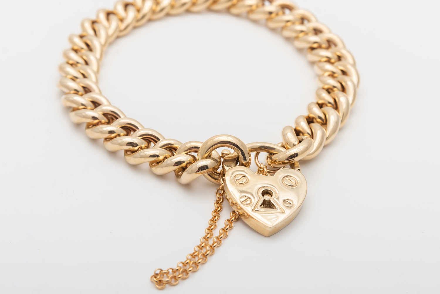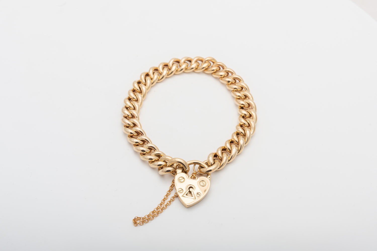 A beautiful classic curb link bracelet with heart padlock